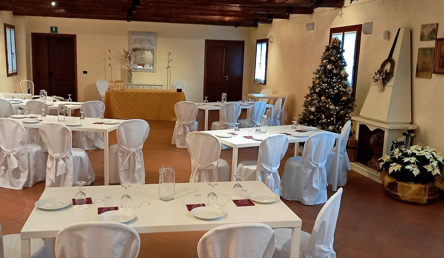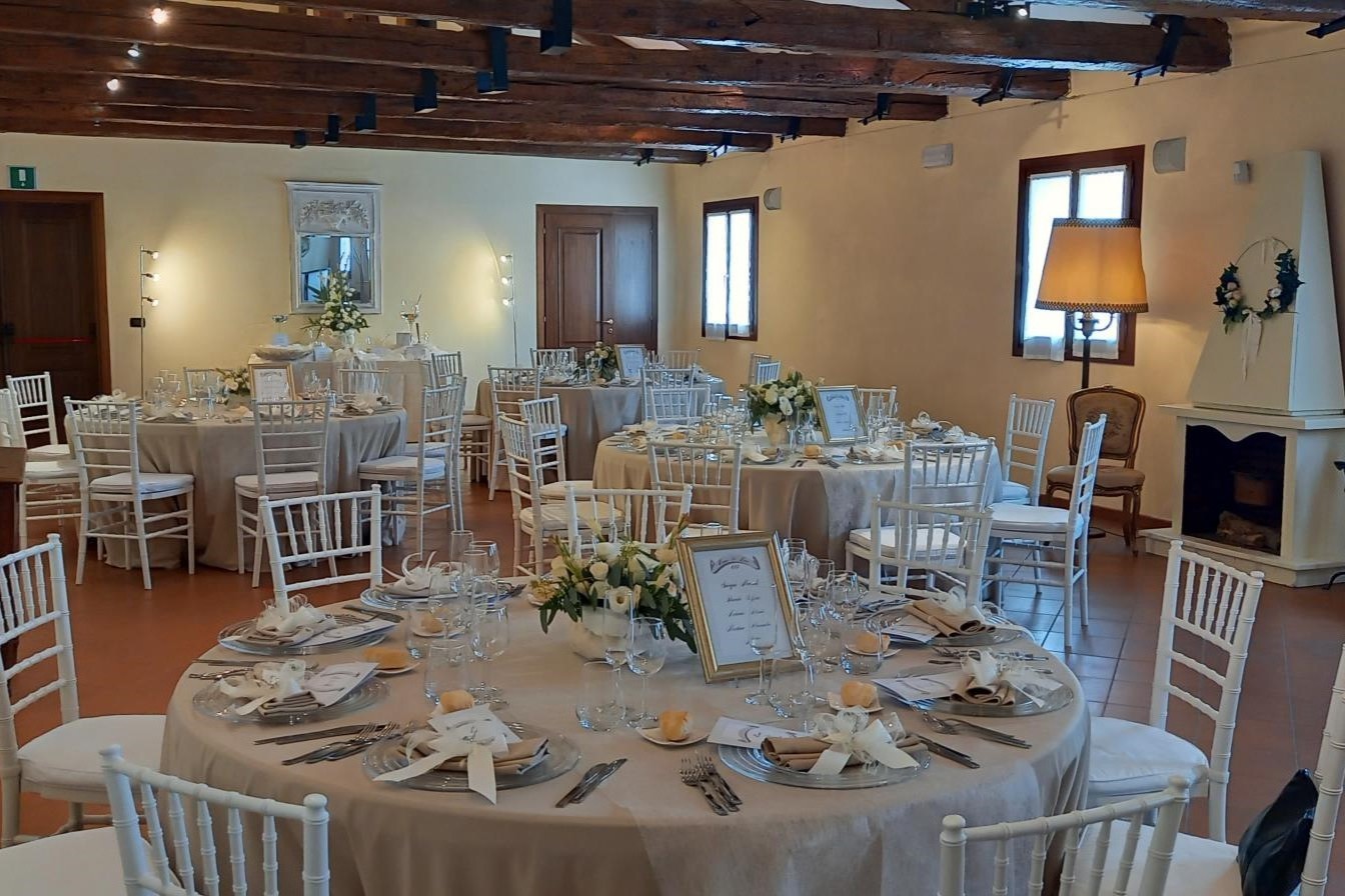 Al primo piano della Barchessa, rifinita in marmorino rosa e travi a vista, la Sala è dotata di luce naturale con affaccio da un lato sul Campiello in stile veneziano e dall’altro sul Porticato e Parco monumentale. Raggiungibile da una comoda scala e con pedana elevatrice, è particolarmente indicata per i servizi di catering grazie anche alla versatilità degli allestimenti.