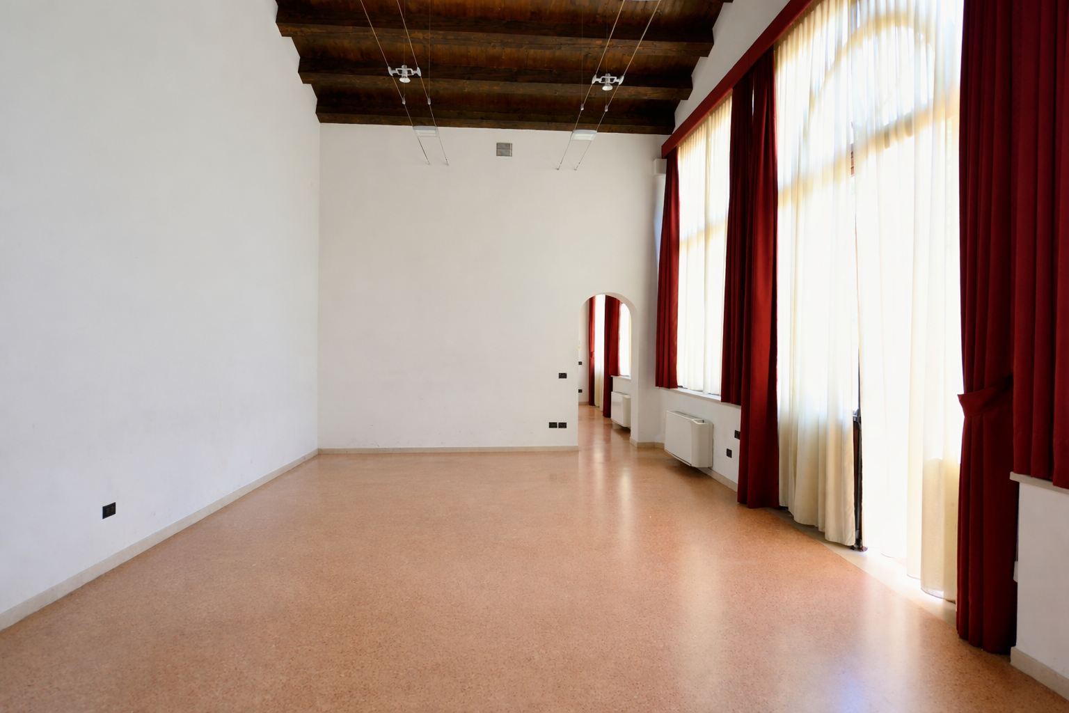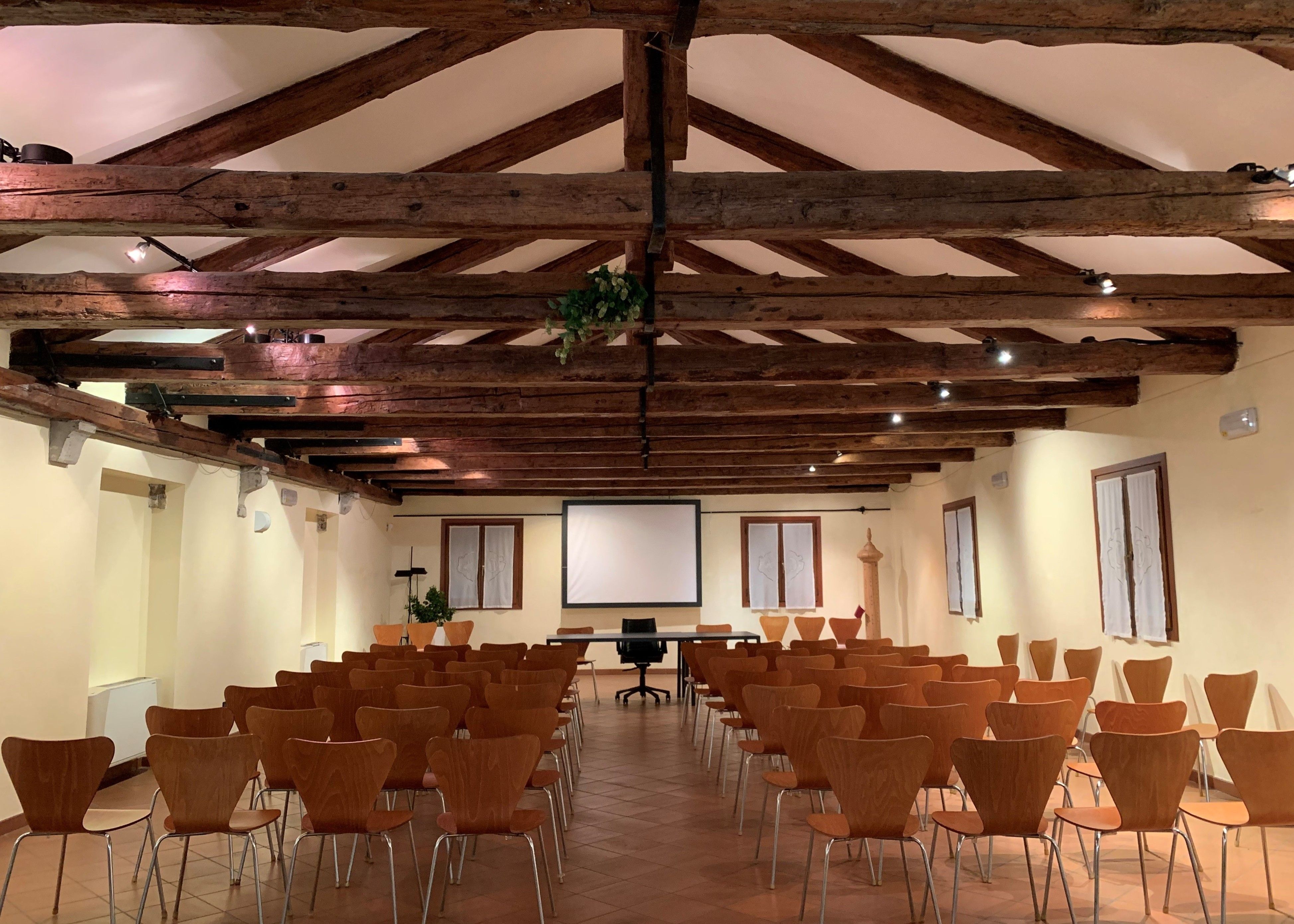 Al primo piano della Barchessa, rifinita in marmorino rosa e travi a vista, la Sala è dotata di luce naturale. Raggiungibile da una comoda scala e con pedana elevatrice, è particolarmente indicata come area multimediale o di appoggio per i servizi di catering nelle adiacenti Sale Widmann e Rezzonico.