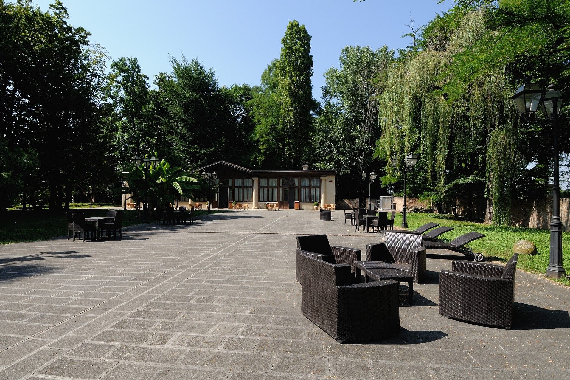 Immersa nelle verdi architetture naturali del parco monumentale, la Terrazza offre uno spazio unico per i vostri eventi in Villa Widmann. Ampia, riservata, lontana dalla vita di tutti i giorni, è lo spazio più grande di tutto il complesso architettonico. Con gazebo o tensostrutture può diventare la soluzione ideale per coniugare cocktail e servizi di catering dai grandi numeri con l’ambientazione storica.